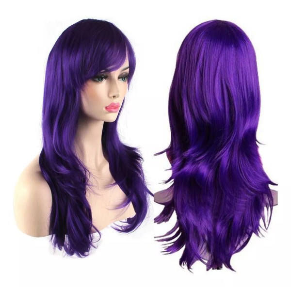 generic Peluca Morada De Pelo Largo Y Rizado Ondulado Traje Cosplay