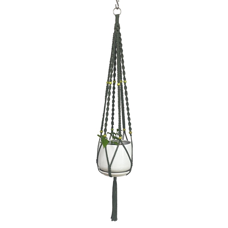 - The Hangers are handmade by our talented artisans, this plant holder is made using 100% Pure Natural Cotton rope. Our hanging plant stand has a strong flexible woven design that can accommodate various shapes and sizes of planters. At 51 inches long, it is perfect for planters up to 9 inches in diameter. (POTS NOT INCLUDED)