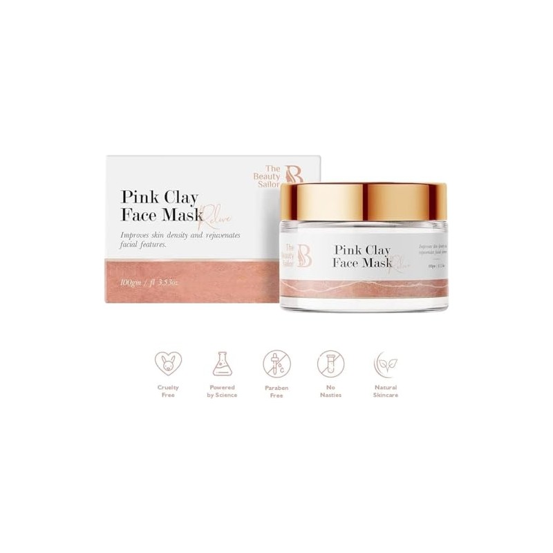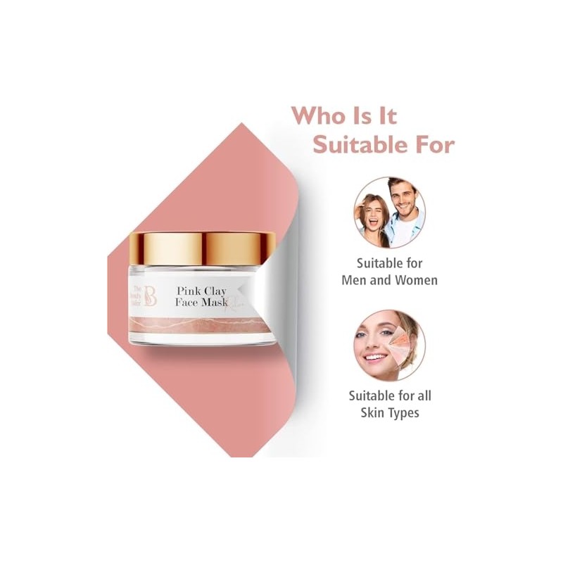 • Pink Clay Face Mask for Men and Women with Vitamin C & E | Natural Kaolin Clay Face Pack | for Wrinkles, Tan, Blackheads & Cleansing | 100gm