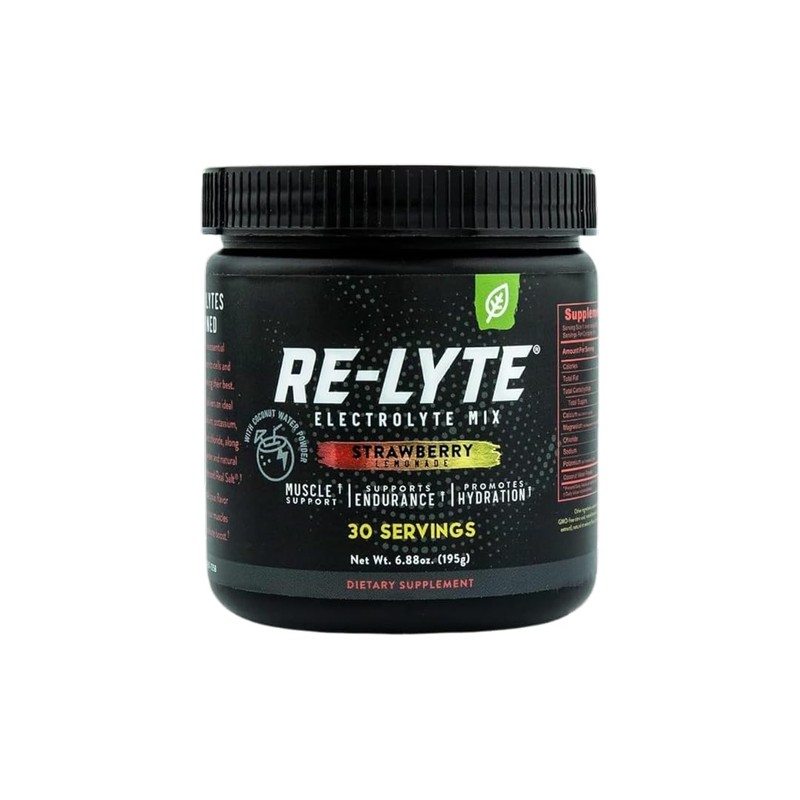 Redmond Re-Lyte Electrolyte Mix with a team of healthcare and fitness experts determined to create the cleanest, most effective electrolyte drink we could. Re-Lyte Electrolyte Mix restores key electrolytes your muscles need to function well C and it has a salty-sweet flavor without any junk C no sugar, no throwaway ingredients. Re-Lyte works better because it has two times more sodium than most electrolyte drinks. We use delicious, unrefined Real Salt brand sea salt, so Re-Lyte Electrolyte Mix can replace the sodium we lose throughout the day and still taste great. Ideal micronutrient blend. Formulated with experts to include a 2:1 sodium:potassium ratio along with other crucial electrolytes for cell performance. SODIUM: 1000mg POTASSIUM: 500 mg COCONUT WATER POWDER: 100 mg (flavored varieties only) CHLORIDE: 1585mg CALCIUM: 75mg MAGNESIUM: 60mg +60 trace minerals Re-lyte Electrolyte Drink Mix Strawberry Lemonade 30 Servings 6.88 oz.