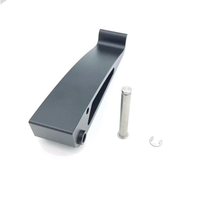 - The weak aluminum pivot pin has been replaced with a custom machined 304 stainless steel pin.