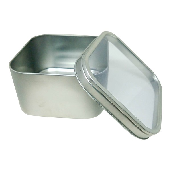 Generic Square Metal Tin Box Storage Containers with Windowed Lids - 4x4x3.5 Inches 16 oz. - Set of 2