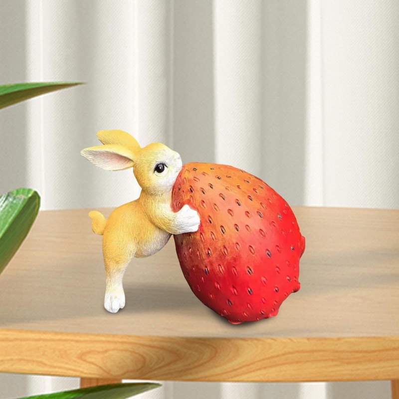 Generic Strawberry Rabbit Figurine Resin Animal Figurine Art Craft Housewarmings Gift Backyard Decoration for Indoor Outdoor Tabletop, Yellow