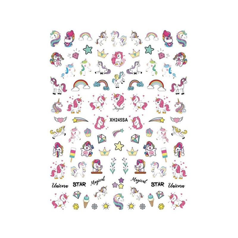 Generic Unicorn Nail Sticker Love Heart Rainbow Stars Ice Cream Crown Butterfly Xh245Sa Nail Wraps Art Stickers Manicure Supplies for Women for Home Nails Full Long Lasting Easy Apply and Remove
