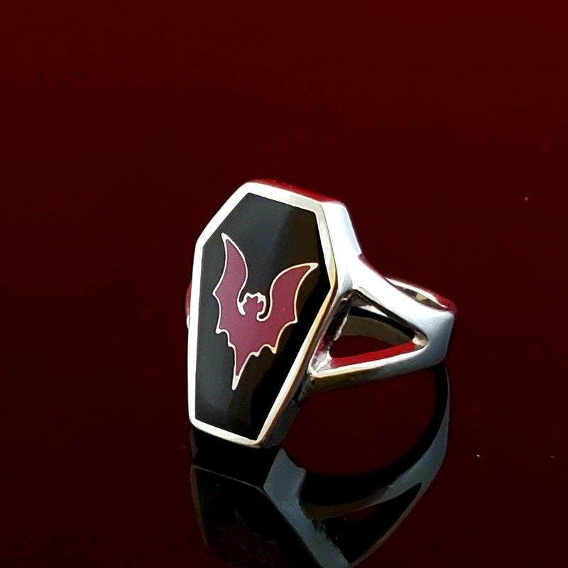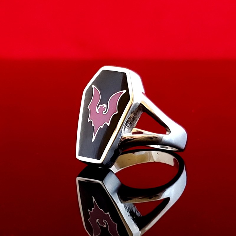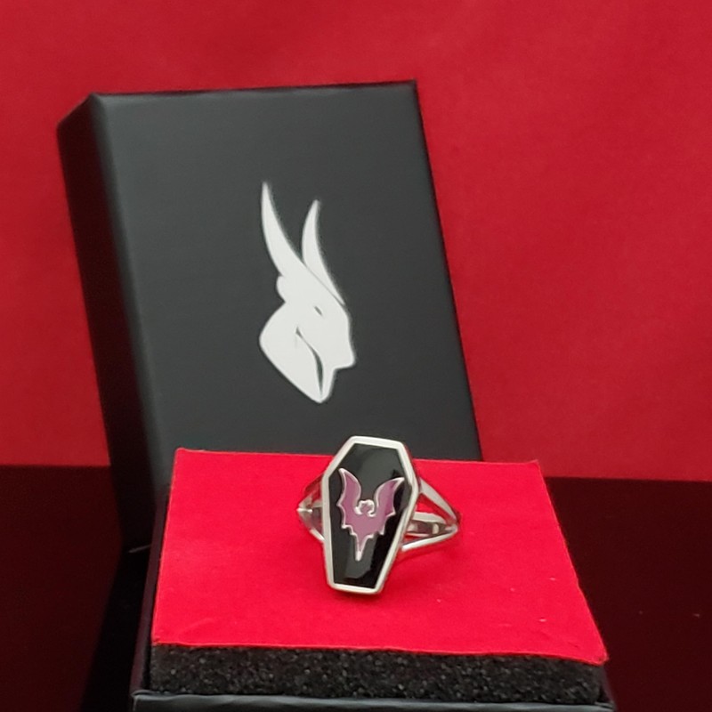 Generic Vampire Goth Coffin Ring with Bat (Purple Bat, 9)