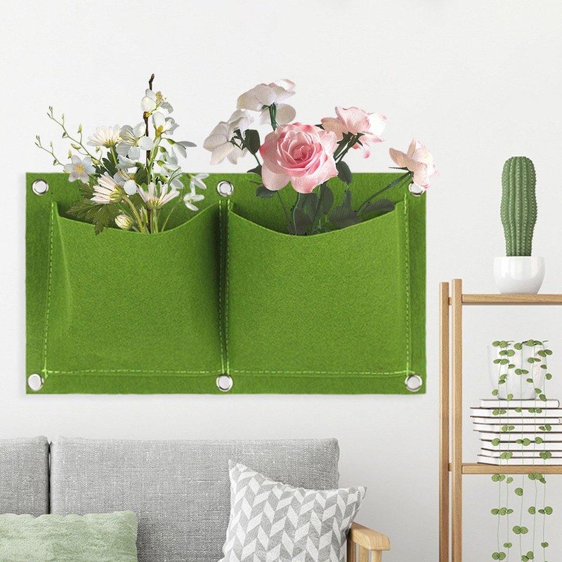Generic Wall Hanging Planting Bag 2 Pockets Lightweight Non-Woven Fabrics Vertical Greening Flower Container for Yard Doorway Plant, Green