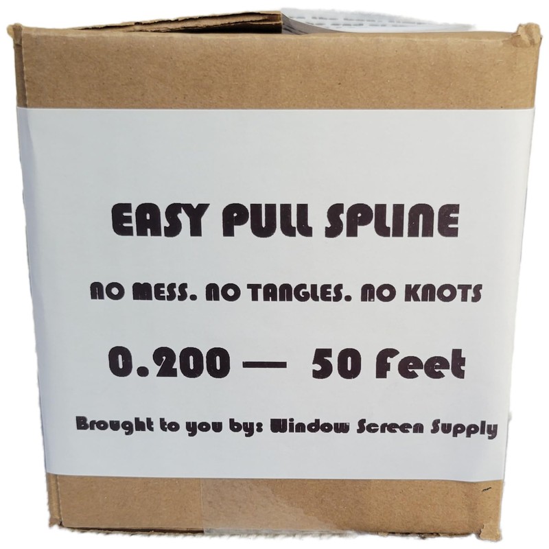 - Window Screen Spline Size: 0.200 in. Diameter, 50ft length. Packaged in our own "Easy Pull Spline" box