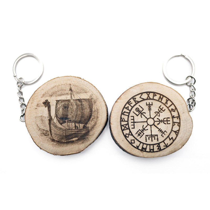 Generico Natural Wood Vegvisir Drakkar Scandinavian Talisman Rune Compass Keyring