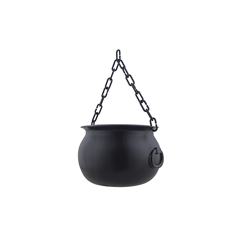 Diameter: 14 cm. With the right Halloween it also allows to Langweiligste Halloween party legendary quickly Mega Event. The fully black in colour for witches and pot is is an excellent horror decoration and due to its handy size fit anywhere. A magical witch accessory on brown chains and therefore can be used as a spooky hanging decoration to hang on the ceiling. This magical witches shell is an ideal Halloween decoration for your Halloween or witch party. Note: Not suitable for children aged under 3 years. May contain small parts – choking hazard.