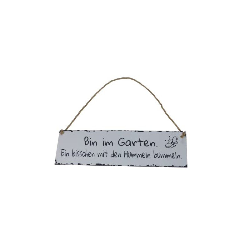 Generisch Bin im Garten Sign with the Bumble Bees Bummeln Weatherproof Shabby Chic Decorative Engraving Sign Hanging Sign White 28 cm