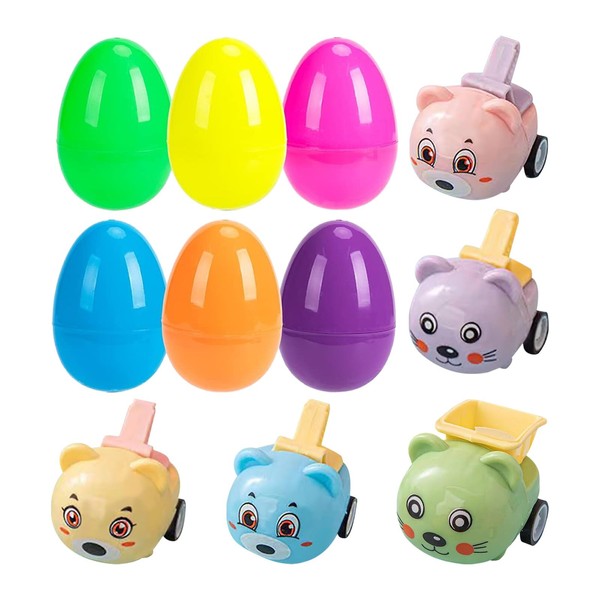 - They are plastic Easter eggs, each with a different toy car to pull back. With this cute pre-installed Easter egg set, you can hide the eggs directly for the Easter egg hunt