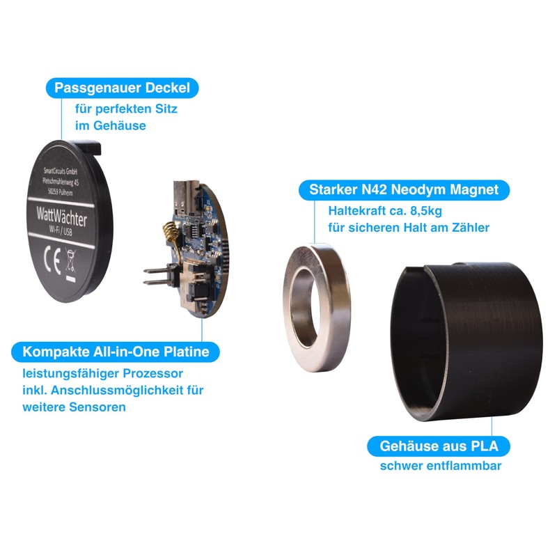 Der WattW?chter haftet dank des eingebauten starken Neodym-Magneten an der Metallfl?che, die die D0-Schnittstelle der meisten Z?hler umgibt.