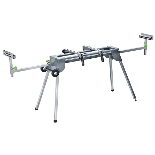 The Genesis GMSS400W Heavy-Duty Miter Saw Stand gives you an instant portable work station wherever you need to use your miter saw. This stand is a work horse, supporting up to 400 lbs. It accommodates all Genesis and most other miter saws, including 12" sliding miter saws. The roller supports are adjustable for height and length with no tools needed and can be extended up to 110". The quick-fold design and wheels make for easy transportation and storage, even with the saw mounted. An adjustable foot keeps the stand level on uneven surfaces.
