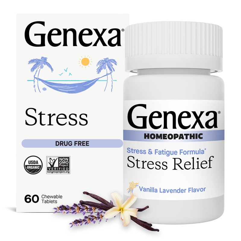 Genexa Genexa Stress for Adults | Anxiety Relief & Fatigue Remedy | Soothing Natural Vanilla & Lavender Flavor | Gluten Free & Non-GMO | Homeopathic Remedy Made Clean | 60 Chewable Tablets