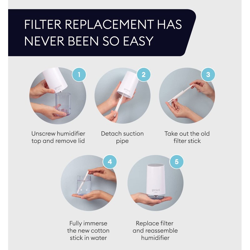 - FOR EVERYDAY USE: These portable humidifier sticks make filter installation a breeze. Simply immerse the whole filter stick in water and soak for about 1 minute prior to placing in the humidifier. We advise you to use tap water with our personal humidifier stick set, and as minimal an amount of essential oils when necessary