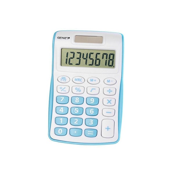 Genie 12492 Compact Pocket Calculator with 8 Digit Display - Blue, single unit