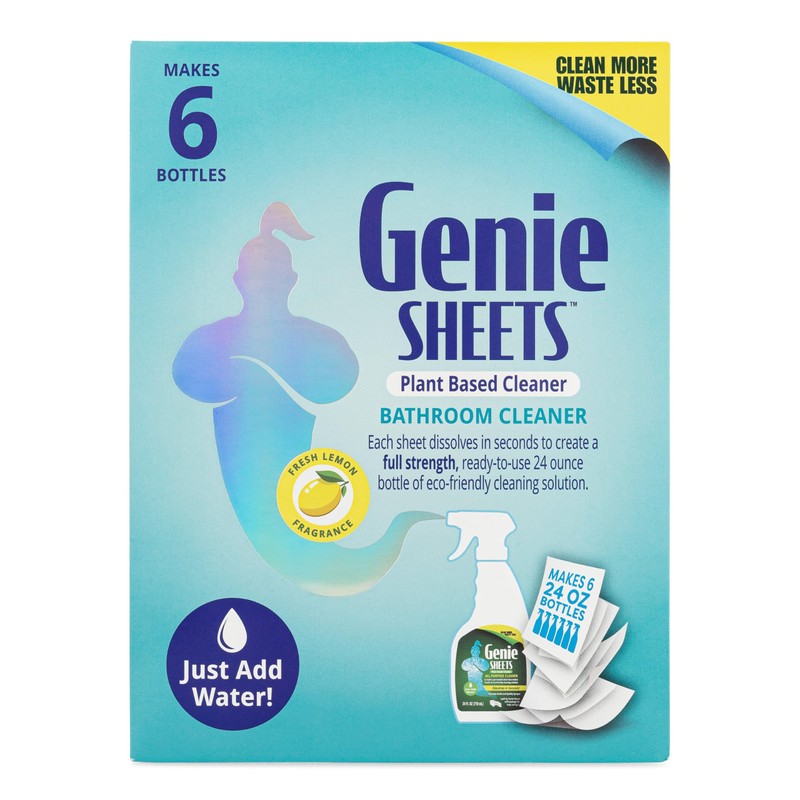 Genie Sheets Bathroom Cleaner | Concentrate Makes 6 24oz Refills | Professional-Strength | Just Add Water | Sustainable Eco-Friendly Plant-Based Solution | 6 Sheets