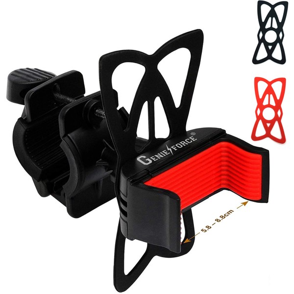 Genieforce GFH02RED Universal Super Stable 360° Rotatable Mobile Phones and Smartphones Holder for Bicycle, Motorcycle - Face ID/Touch ID Compatible - Handlebar Mount