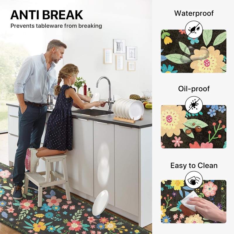 - Anti-Fatigue: Design Crafted with high-density memory foam, our kitchen floor rug delivers superior cushioning for your feet, knees and back during long cooking sessions. The ergonomic design reduces joint pressure and fatigue while you're meal prepping, washing dishes, or using it as a standing desk mat. Say goodbye to tired feet and hello to a more enjoyable time in the kitchen