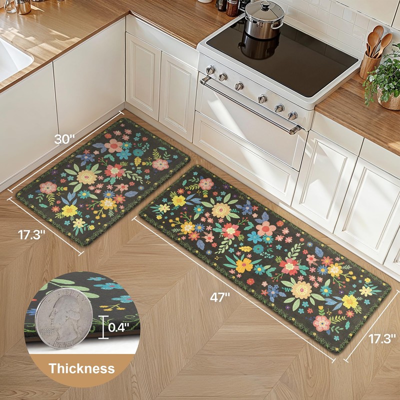 - Vintage Floral Design: Genimo's vintage-inspired kitchen mat set brings timeless charm to your home with its refined floral patterns and rich, artistic colors. These beautifully designed runner rugs add a cozy yet sophisticated vibe to modern kitchens, blending nostalgic appeal with contemporary style - the perfect way to elevate your space with personality and warmth