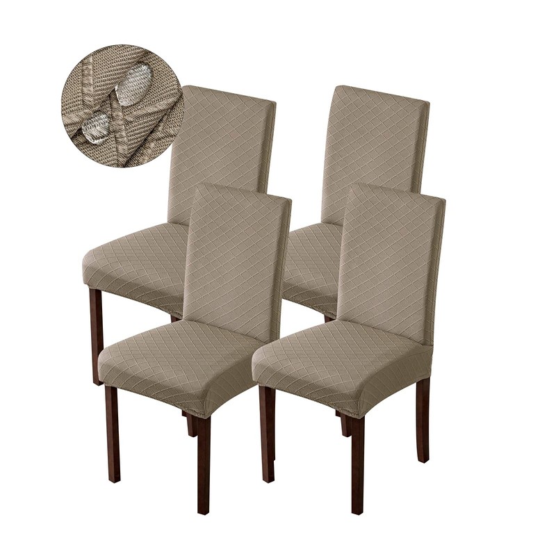 Genina Waterproof Chair Covers for Dining Room Dining Chair Covers Kitchen Parsons Chair Covers (Taupe, 4 PCS)