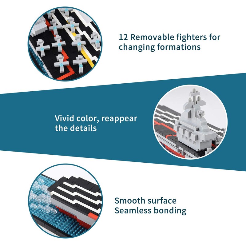 - High Quality Material: This Aircraft Carrier model building blocks Set made of durable plastic, safety from harmful chemicals. The smooth surface of each bricks make it has good compactness.It is strong enough to hold onto another brick but easy enough for a child to pull apart.