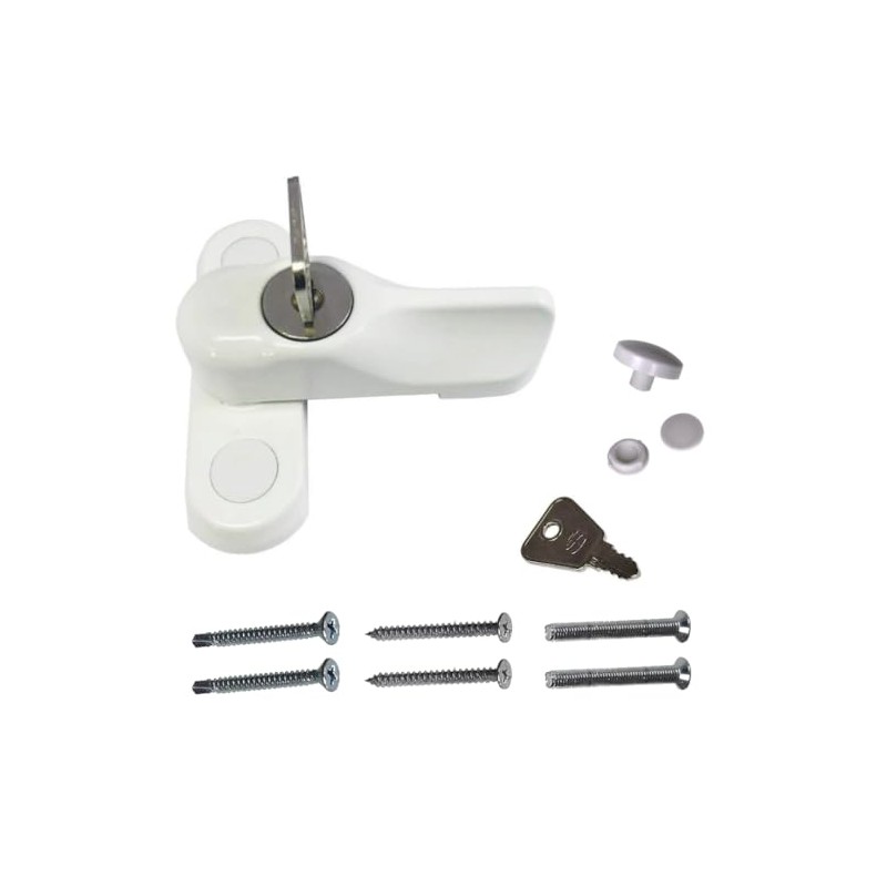 - Includes stud to suit variety of materials, 2 screw cover studs, fixings & 1 x key.
