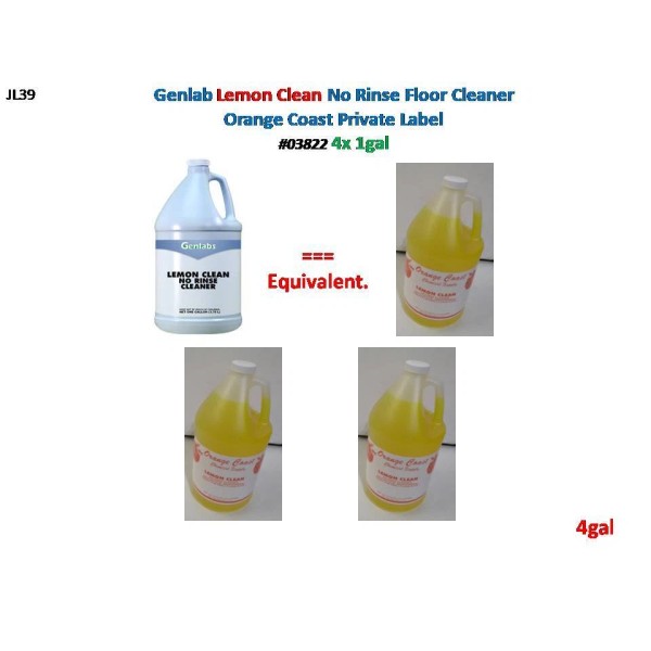 Genlabs Genlab Lemon Clean No Rinse Floor Cleaner 4x1 gal - Orange Coast private Label