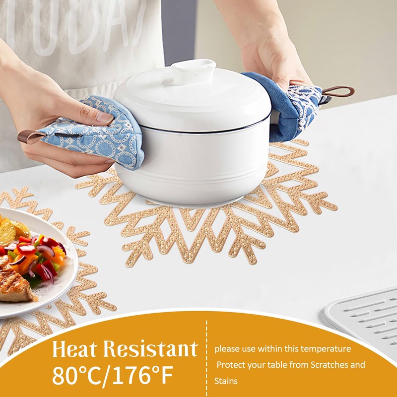GENMOUS Snowflake Gold Placemats Set of 18, Metallic Vinyl Christmas Round Placemats Bulk,Washable PVC Placemats Gold Charger Plates Dining Table Mats for Winter Festival Holiday Party Feast Christmas