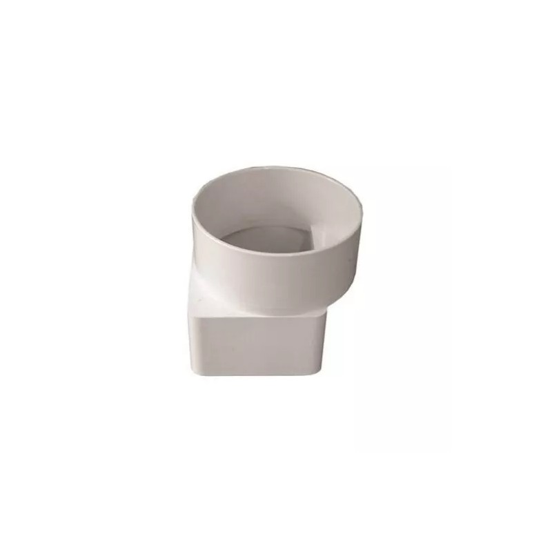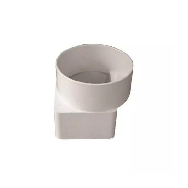 Duraspout offset downspout Adapter, 3 x 4 x 4 in nominal, hub/Spigot end, White, used to connect rain gutter downspouts to underground sewer piping. Can also be used with metal risers. Easy to install peel and stick application, no flame required.