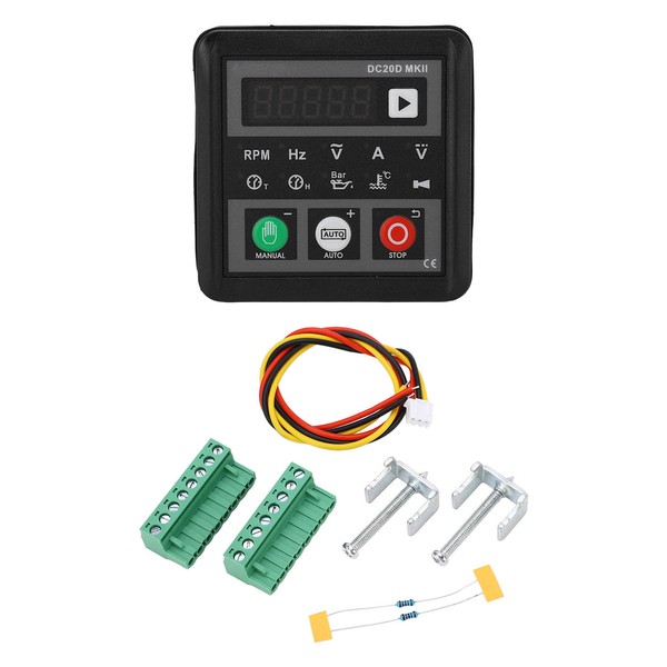 1、INDICATION FUNCTION: This is a controller for diesel engine generator set, is an upgrade product. With automatic start and stop, protection and alarm indicator function. The panel contains a digital display screen and the function of operation status indication 2、FAULT ALARM: The monitoring part has overspeed, overclock, generator overvoltage, overcurrent, low oil pressure, high water temperature, low water level, start failure, stop timeout, emergency stop alarm and low battery voltage fault indication, more conducive to the identification of engine and generator state 3、ADDED FUNCTIONS: Add current, speed measurement and display function; Added an RS485 port for connecting to a computer 4、WATERPROOF METAL CASE: Upgraded case waterproof ring, metal fastener, 4 layer circuit board, more stable 5、CONFIGURABLE PARAMETERS: The output contact adopts relay, which can withstand large output current, and the system parameters can be set according to the key, so as to meet the application of different occasion