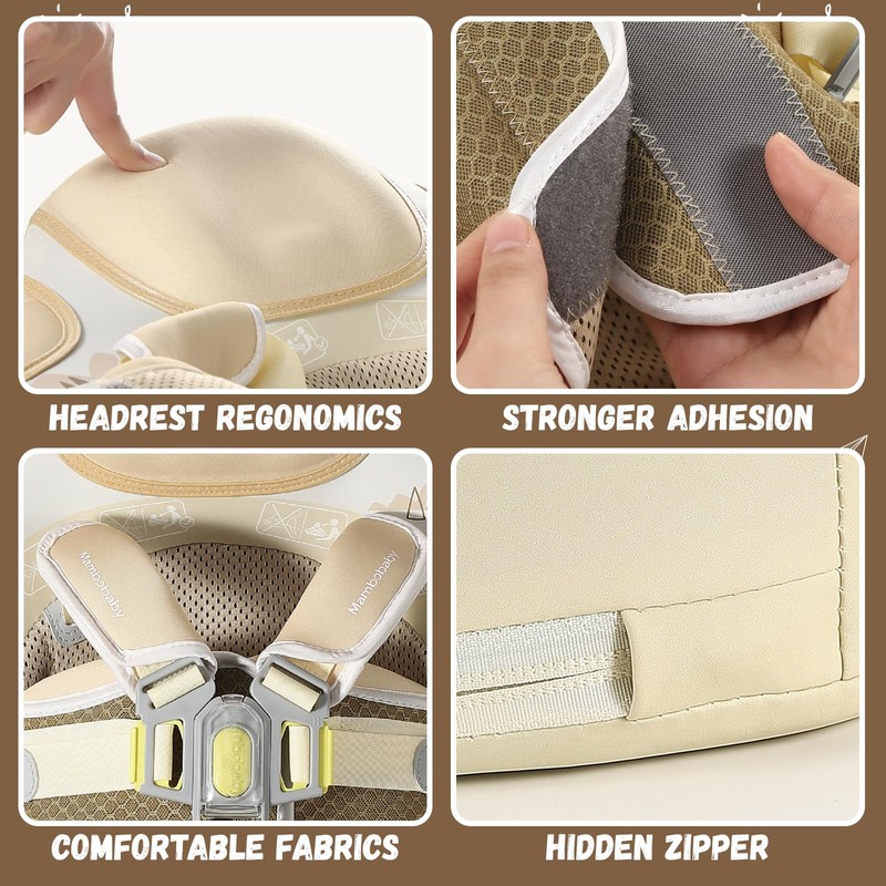 - All-round Security: The removable tail can prevent the baby from tipping backwards. And the Upgraded safety buckle provides 5 support points and perfect 40°angle to keep a balance to avoid baby flip over and fall off. The unbuckling device with a safety box to prevent the baby from accidentally unbuckling the harness. Meanwhile, the baby canopy is equipped with see-through mesh, making it easy for parents to keep an eye on their baby at all times