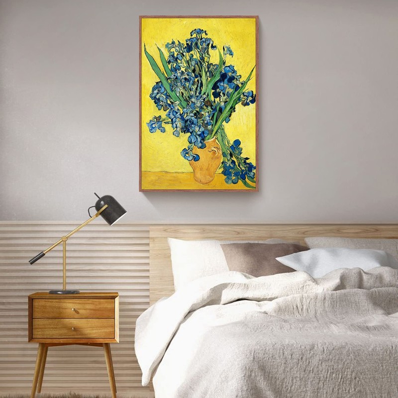 GENTLE DEER Framed Wall Art Canvas Prints of Vase with Irises Against a Yellow Background by Vincent Van Gogh Classic Oil Painting Style Reproduction Abstract Artwork Museum Quality for Home Decor