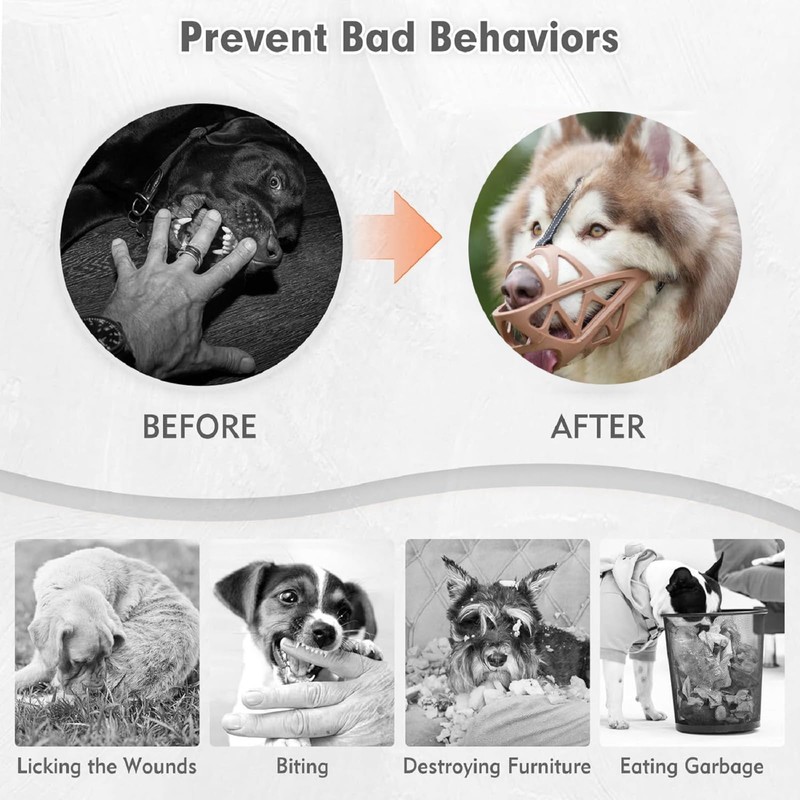 - 【Prevent pets from biting and ensure safety】No more unnecessary biting when going out for a walk, the dog muzzle can effectively prevent small, medium and large dogs from biting, but allow them to drink water and pant. It can also effectively help change the dog's behavior, put on the muzzle when the dog chews, bites or barks, help them calm down, and remove the muzzle after a few minutes to correct their behavior.