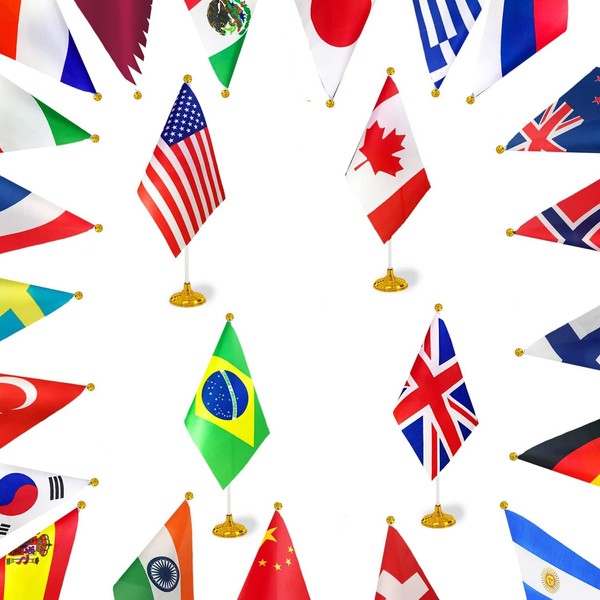 - Specifications: 24 packs desk flag, 11.8-inch plastic dome, 8.2" x 5.5",Stand Base size:2 inches(5cm),Countries include the USA, Canada, Holland, Mexico, the United Kingdom, Germany, France, Italy, Russia, China, Japan, Korea, New Zealand, Turkey, Switzerland, Brazil, Argentina, Greece, Sweden, Norway, Finland, Spain, Bahrain,India.