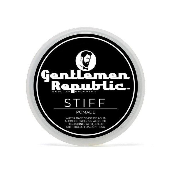 - PREMIUM QUALITY: Gentlemen Republic Stiff Pomade is a premium men's hair pomade made in the USA with top-quality ingredients. Free of beeswax, alcohol, paraben and artificial colors, it offers a water-soluble formula for easy rinsing. Enjoy a fresh, pleasant fragrance that keeps your hair smelling great all day.