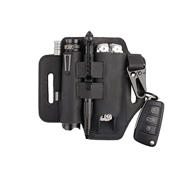 Gentlestache Multitool Leather Sheath for Belt, EDC Organizer, Multitool Pouch,Leather EDC Sheath with Elastic band Pen Holder, Flashlight Holder and Keychain Clip, Practical Belt Pouch for EDC Gears