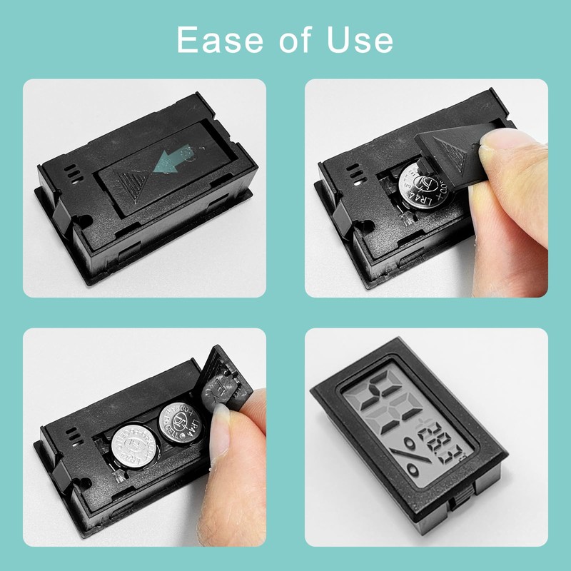 - Package contents: This set contains 4 electronic thermometers with ABS housing with product dimensions of 48 mm x 28 mm x 15 mm, a temperature measurement range from -50°C to +70°C and a humidity measurement range of 20% to 90%. With this product, you can track the humidity and temperature conditions of the intended use at any time, so that you can adjust your life and work accordingly.