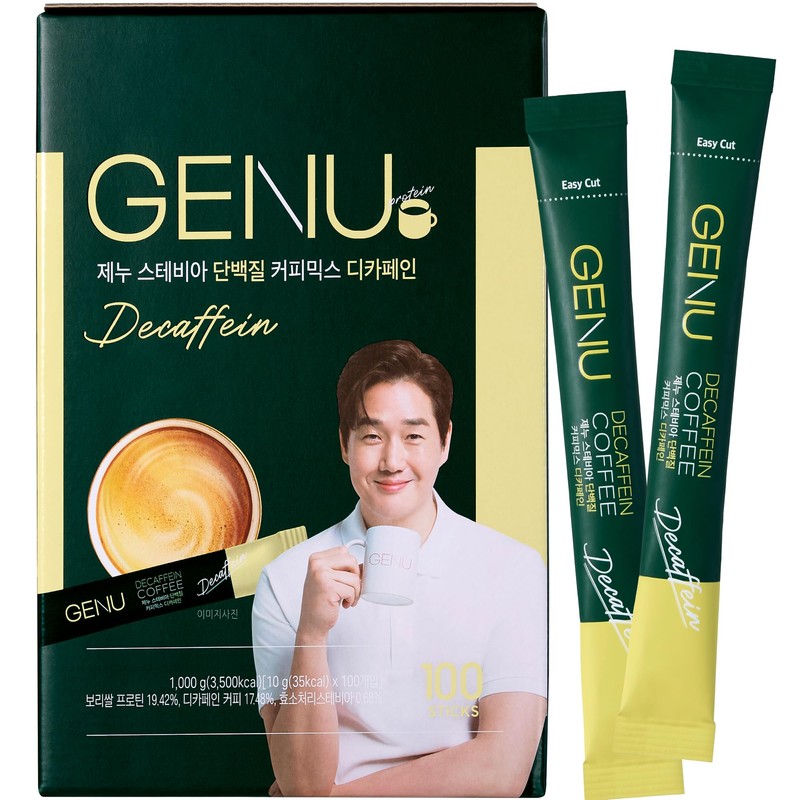 GENU Stevia Protein Coffe Mix, Instant Coffee (100 sticks, Decaffein), Korea's No1 selling Zero Sugar Coffee Mix