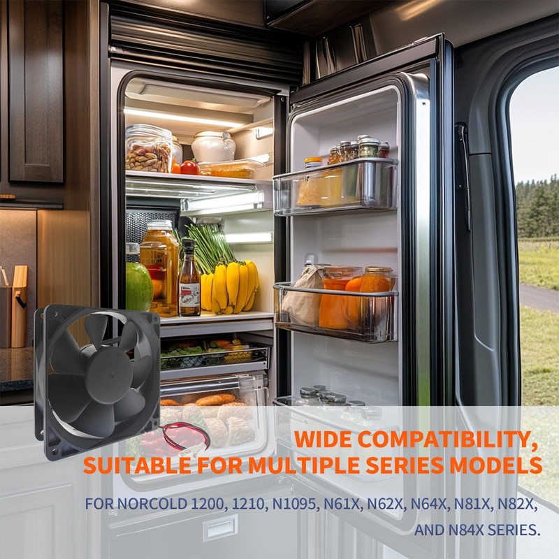 - 𝐖𝐢𝐝𝐞 𝐂𝐨𝐦𝐩𝐚𝐭𝐢𝐛𝐢𝐥𝐢𝐭𝐲 𝐍𝐨𝐫𝐜𝐨𝐥𝐝 𝐑𝐞𝐟𝐫𝐢𝐠𝐞𝐫𝐚𝐭𝐨𝐫 𝐌𝐨𝐝𝐞𝐥𝐬: This fan assembly fits Norcold models, including 1200, 1210, N1095, N61X, N62X, N64X, N81X, N82X, and N84X series, making it the perfect replacement for a wide variety of units. Confirm compatibility with your model using your refrigerator's manual or part number.