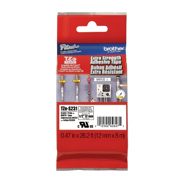 GENUINE Brother 1/2" Black on White Extra Strength Label Tape For PT-3600