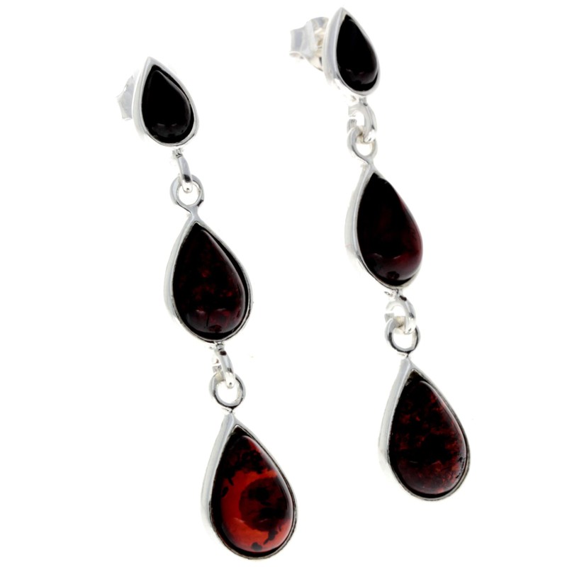 Genuine Cherry Natural Baltic Amber and 925 Sterling Silver Dangly Drop Earrings GL150CH