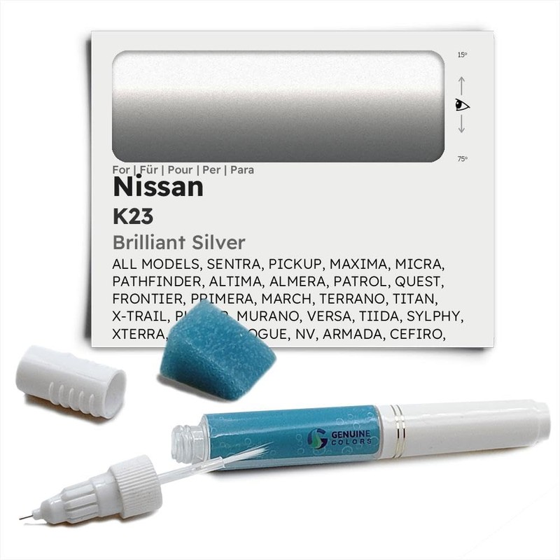 Genuine Colors Paint Pen Brilliant Silver K23 for Nissan Silver SENTRA PICKUP MAXIMA MICRA PATHFINDER ALTIMA ALMERA PATROL QUEST FRONTIER PRIMERA MARCH TERRANO TITAN X-TRAIL PULSAR MURANO VERSA TIIDA