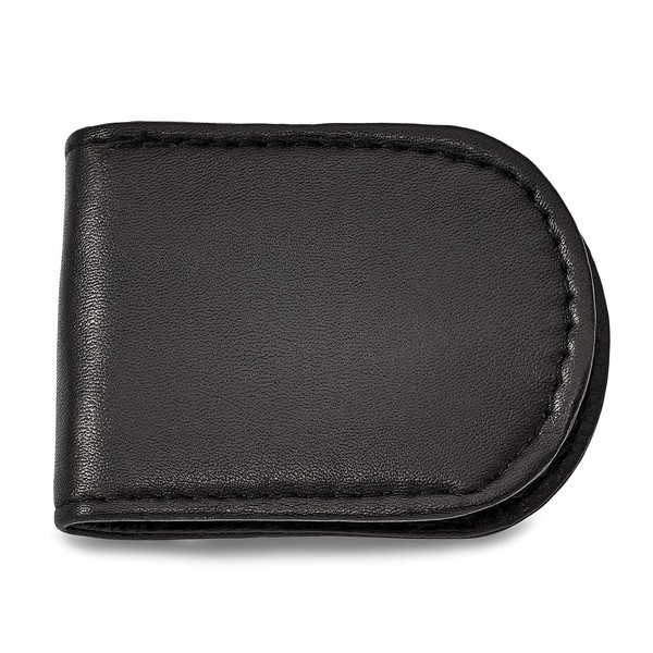 Genuine Cowhide Smooth Black Leather Magnetic Money Clip