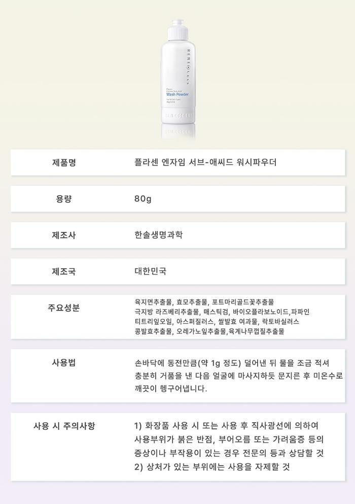 (정품당일) 르네셀 플라센 엔자임 서브-애씨드 워시파우더 80g