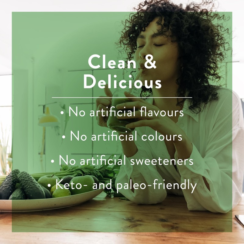 - GREENS NEVER TASTED SO GOOD:Each convenient daily serving of Greens+ extra energy is now available in our NEW sweet and aromatic vanilla flavour, and contains no artificial flavours, colours or sweeteners. Free from gluten, dairy and GMO's. Keto & paleo-friendly.