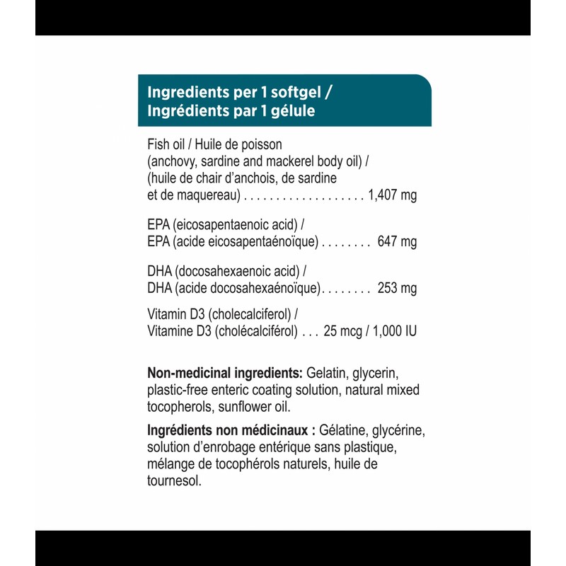 Omega3+ TRIPLE STRENGTH + D3 brings you fresh, pure and high potency omega-3 fatty acids and the EPA/DHA ratio recommended by the American Heart Association. Also includes vitamin D for a healthier heart, naturally--with just one easy capsule per day!