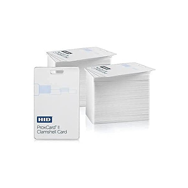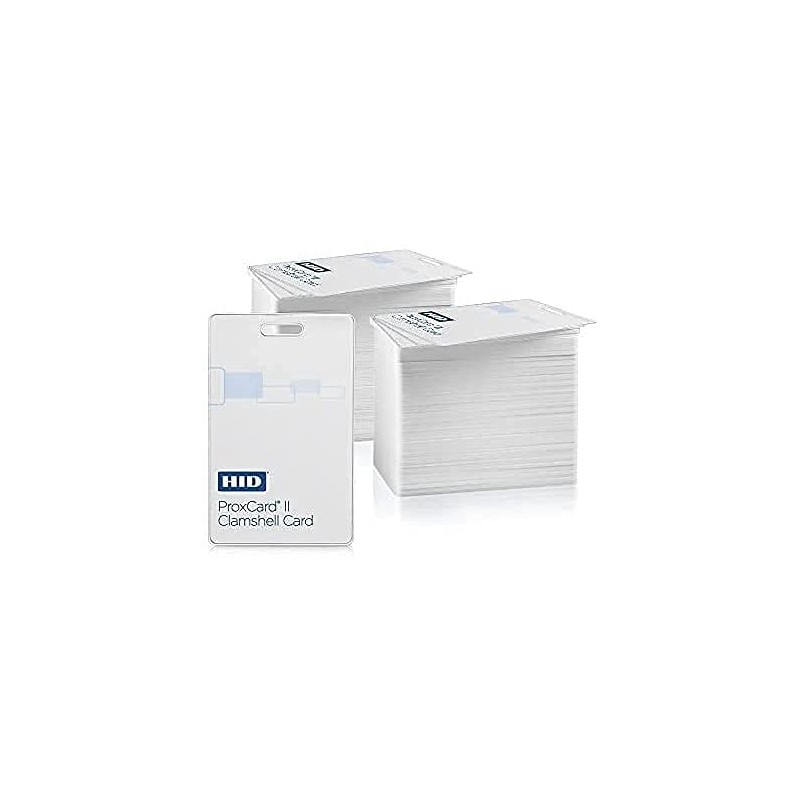 Genuine HID 1326 ProxCard II Clamshell Cards Format: 26 bit (H10301) Facility Code:101 Range: Pre-assigned sequential range HID is the leading manufacturer of proximity cards, with access control systems in use at businesses around the world. HID prox cards are compatible with all HID proximity card readers. These durable HID ProxCard II Clamshell cards are made from thick PVC. Used in access control systems in office buildings, large company campuses, schools and universities, and transportation, clamshell prox cards are programmed for 125 kHz proximity systems. Includes a slot punch for a vertical card. If desired, you can customize your clamshell cards by printing your design on a thin CR79 10mil adhesive card and then applying the printed card to the surface of your clamshell card. You cannot print directly on clamshell cards using an ID card printer due to the thickness. Dimensions: 3.37 X 2.125 X 0.075 IN