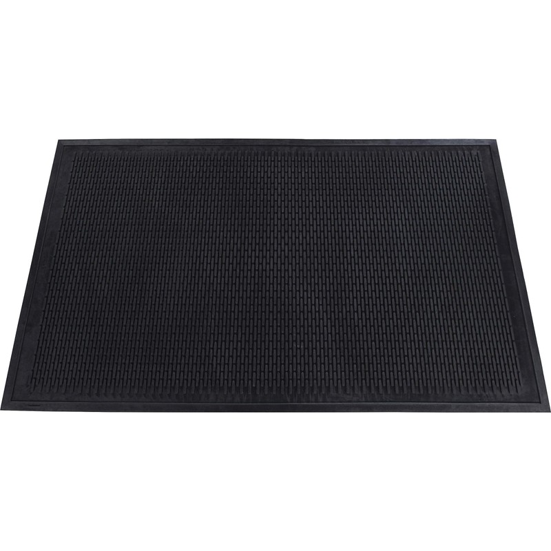 Genuine Joe Clean Step Scraper Floor Mats - Outside Entrance, Outdoor - 72" Length x 48" Width - Rubber - Black - 1Each Outdoor mat is ideal for any outside entryway. The superior molded tread aggressively scrapes a shoe clean of dirt and grime and traps it into the base of the mat. Mat contains a high percentage of recycled rubber.
