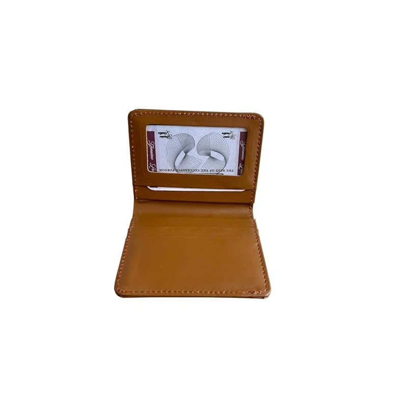 Genuine Leather Bifold Wallet, 6 Card Slots, ID Window, Black/Brown/Tan, Slim Design, 10 x 8 cm (Tan)